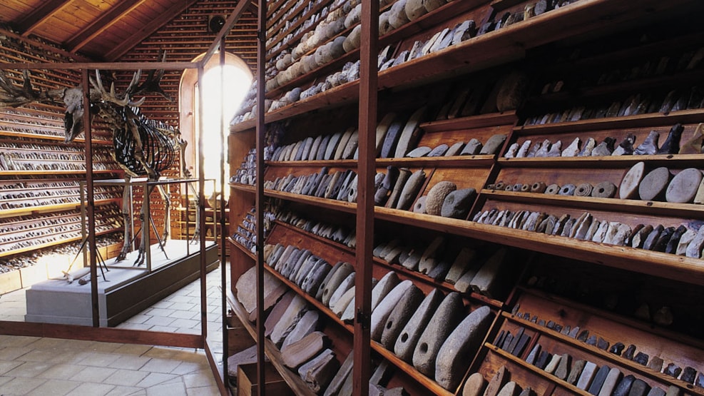 Ein kleines markantes Gebäude, in dem die fantastische Sammlung von Altertümern des Gutsbesitzers und Kammerherrn Niels Frederik Bernhard Sehested (1813-1882) ausgestellt wird. Die Sammlung umfasst 60.000 Stück Flint, die in nur wenigen Jahren auf den Feldern des Anwesens gesammelt wurden: Flintbeile, Pfeile und andere Flintwerkzeuge.